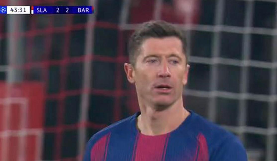 此役客场对阵布拉格斯拉维亚,首发出战的莱万在比赛第44分钟禁区内解围时不慎将球打入自家大门,让一度反超比分的巴萨在半场结束前被对手扳为2-2。