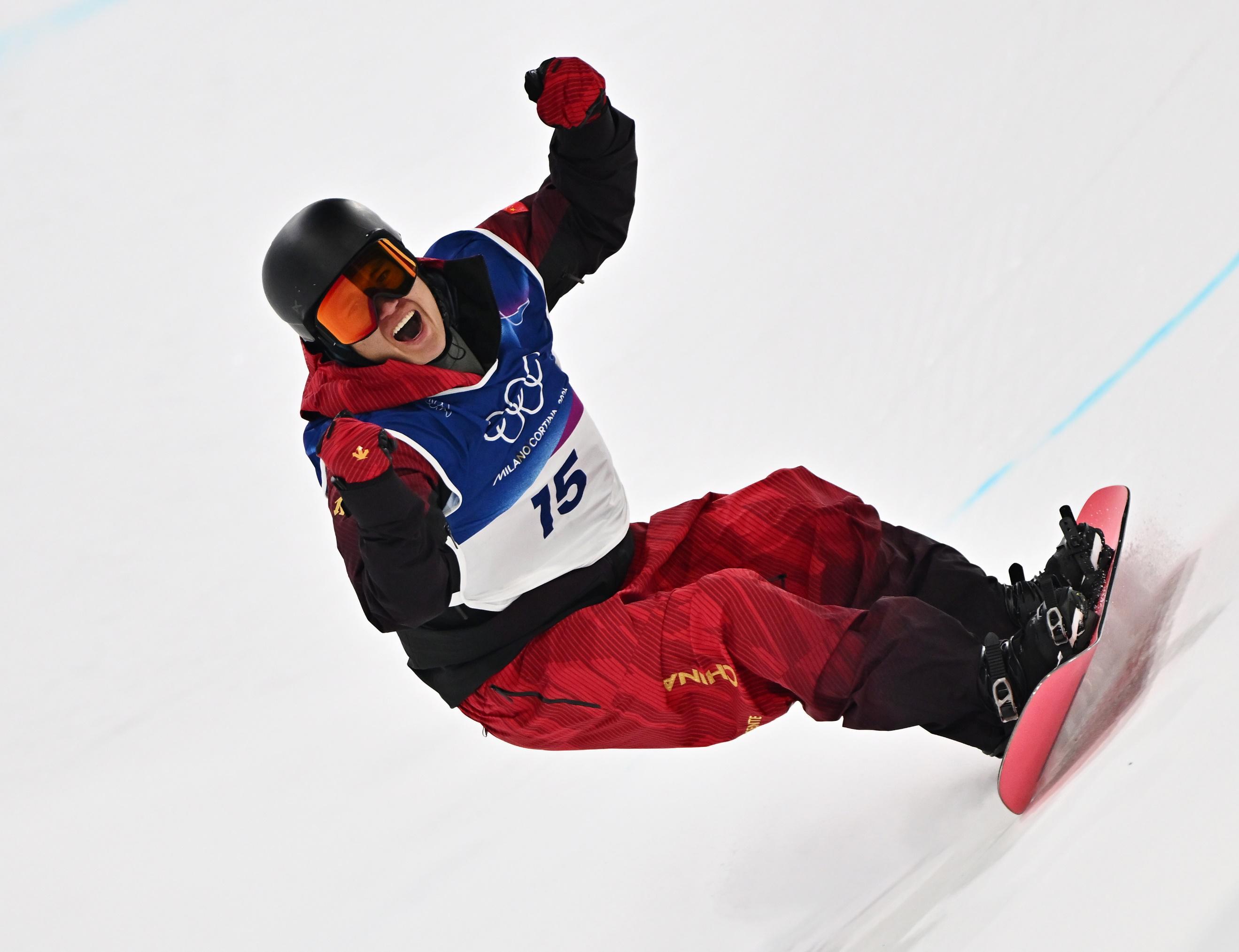 中国选手王梓阳在米兰冬奥会单板滑雪男子U型场地技巧(U池)决赛中(图片来源:新华社、中国体育图片)